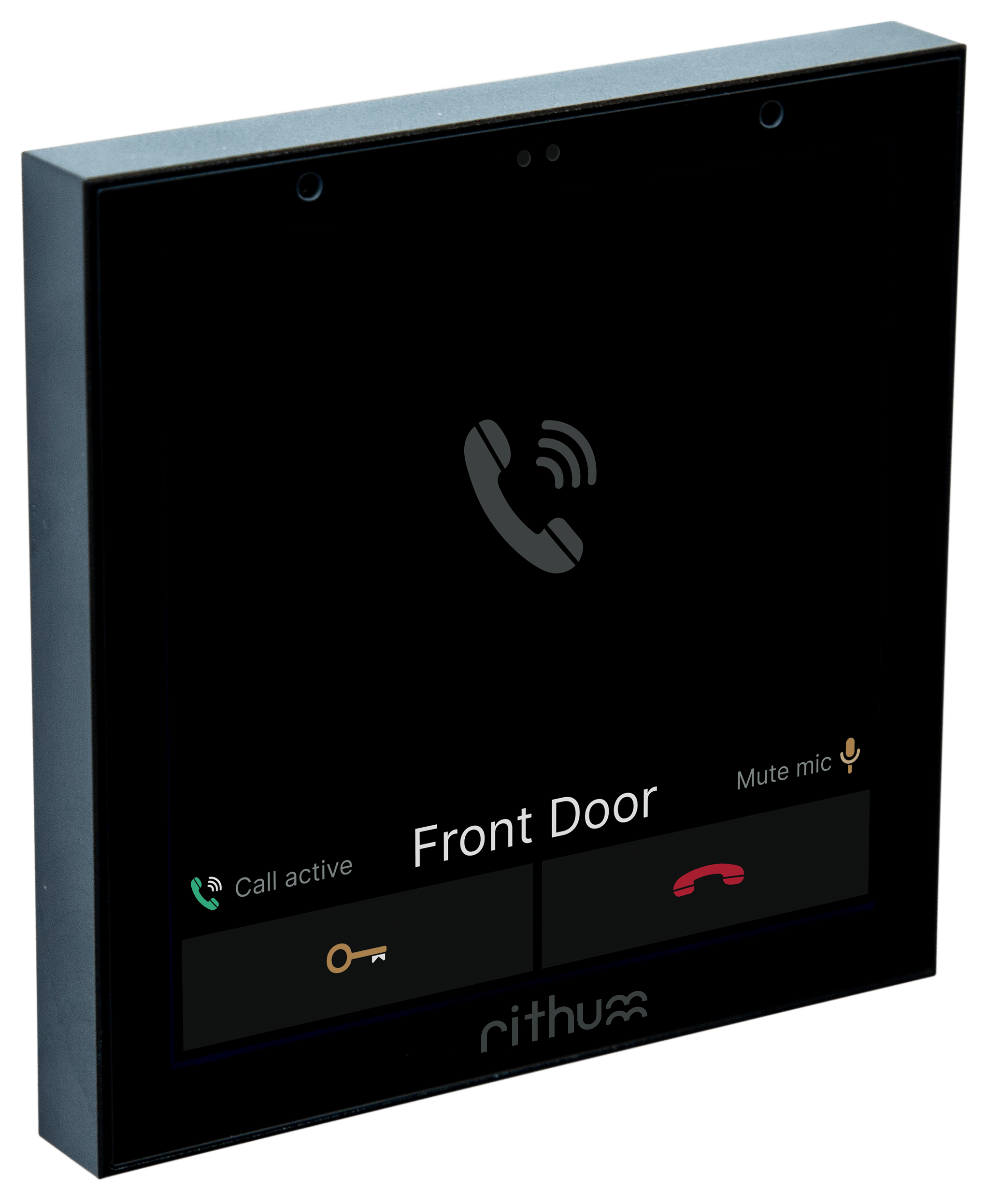 Rithum Switch Pro supports two way audio communication with any p2p SIP door station, meaning that Rithum users can not only control their lights, audio, climate and more but also communicate with callers and visitors.